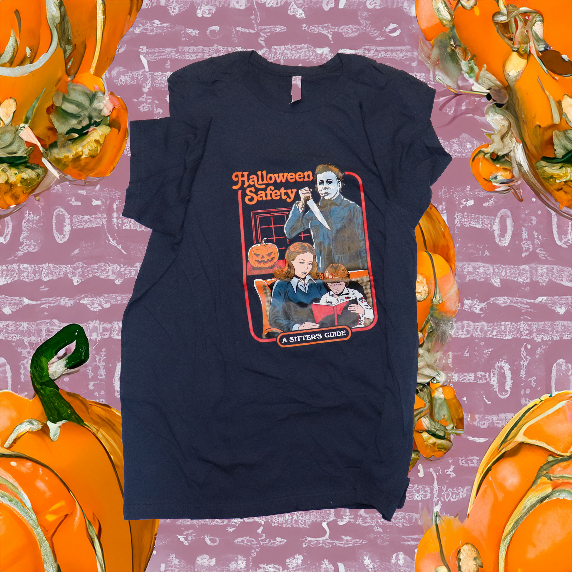 Mens HALLOWEEN SAFETY T-Shirt for a man who is a horror movie enthusiast or likes Halloween.