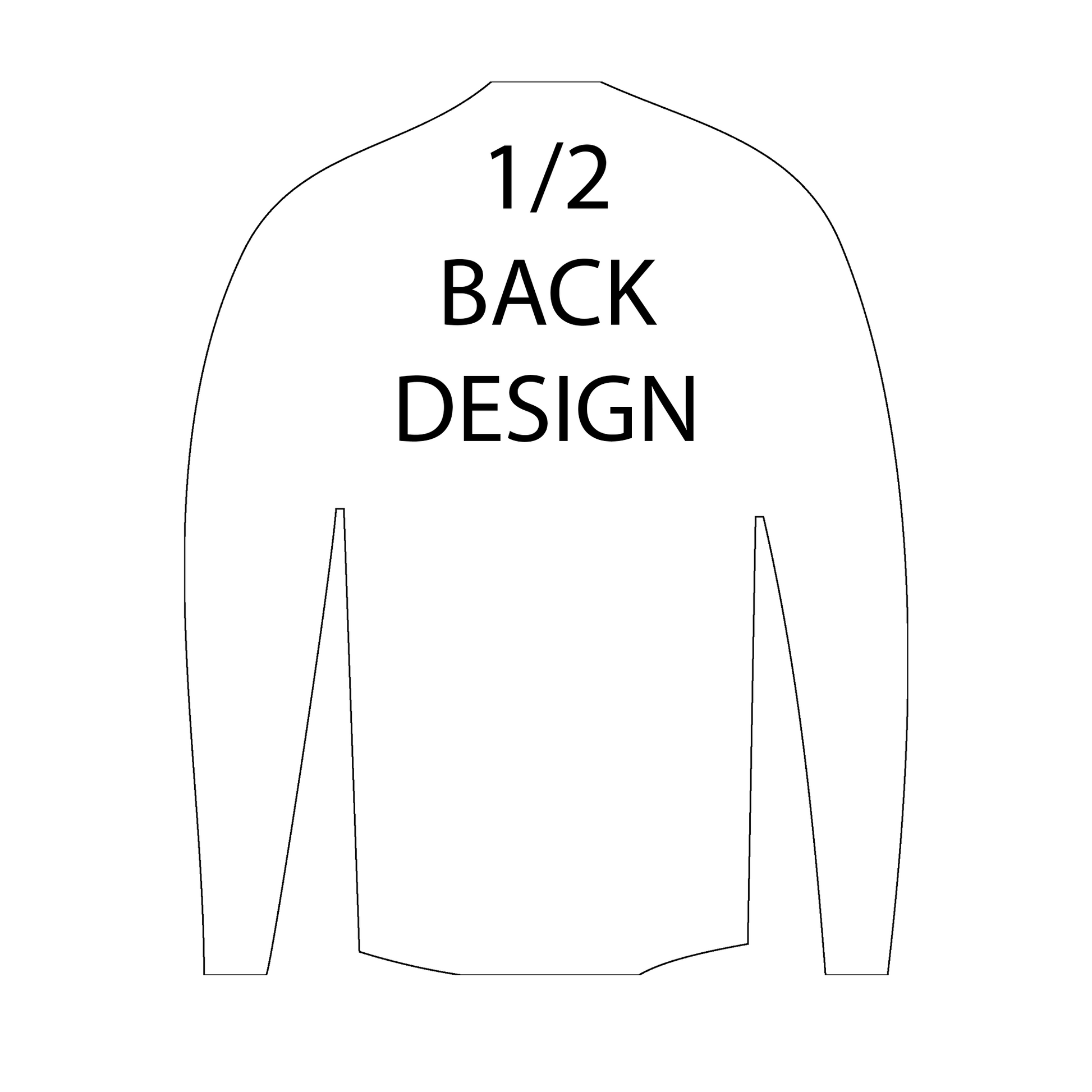 Customize your own t-shirt with a 1/2 back design on it. Production time typically takes 2 weeks depending on the volume and our current workload, but can also be ready as soon as same day. Please use Special Instructions box during checkout process.