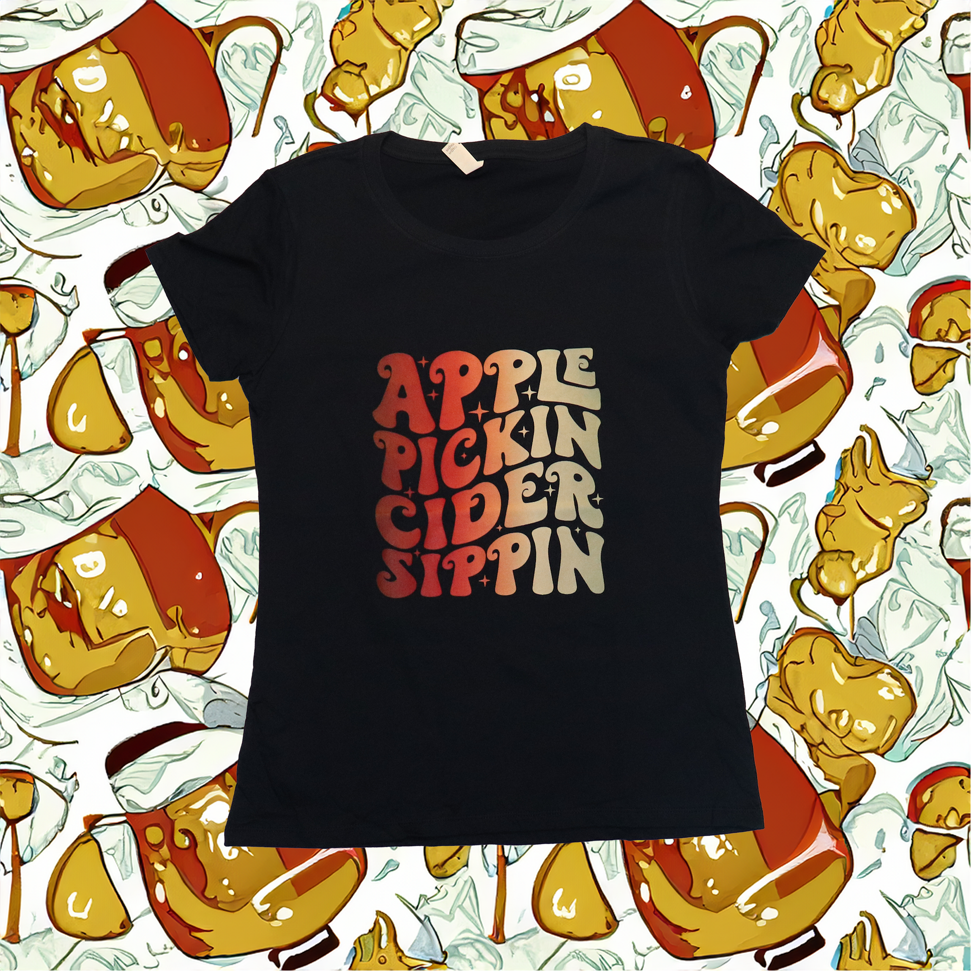 Womens APPLE PICKIN CIDER SIPPIN Tee for the fall / autumn season. Makes a good gift for Halloween.