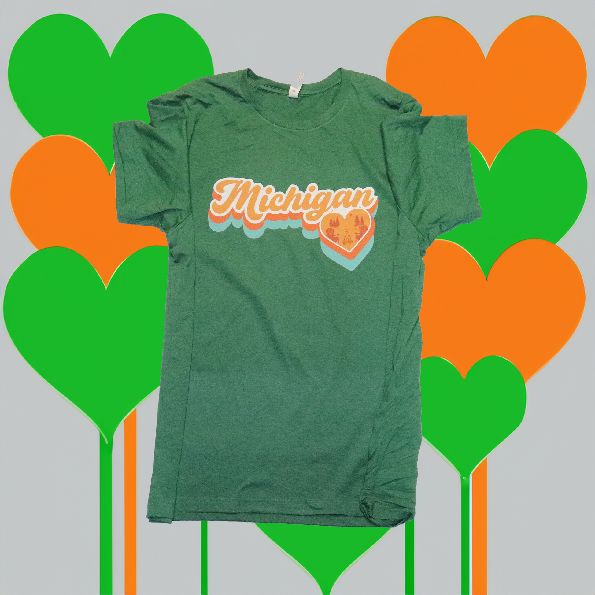 Womens MICHIGAN HEART Tee. Makes a good gift for a woman who loves the state of Michigan.