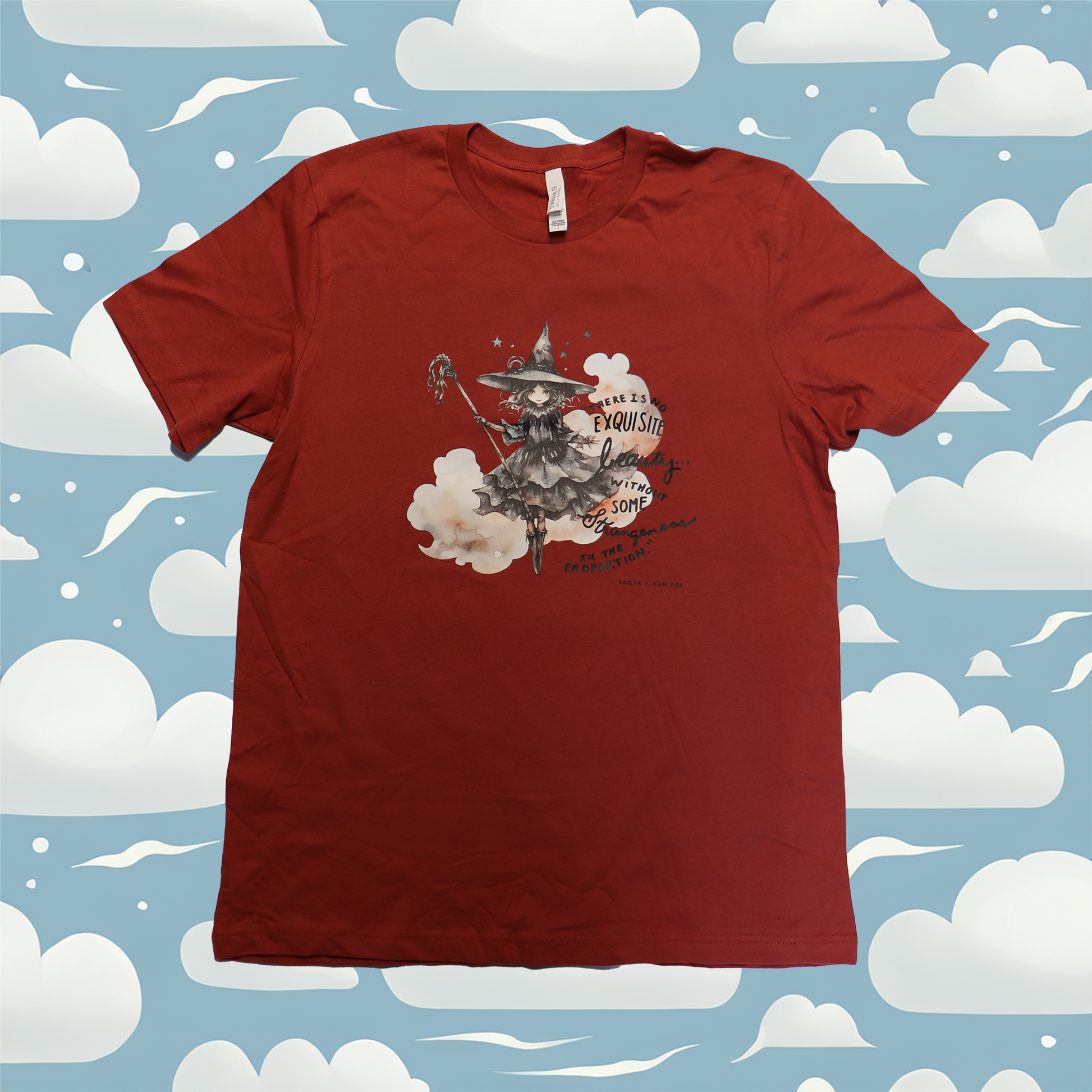 Womens EXQUISITE BEAUTY WITCH Tee for a woman who loves Halloween and the fall / autumn season. Quote by Edgar Allan Poe.