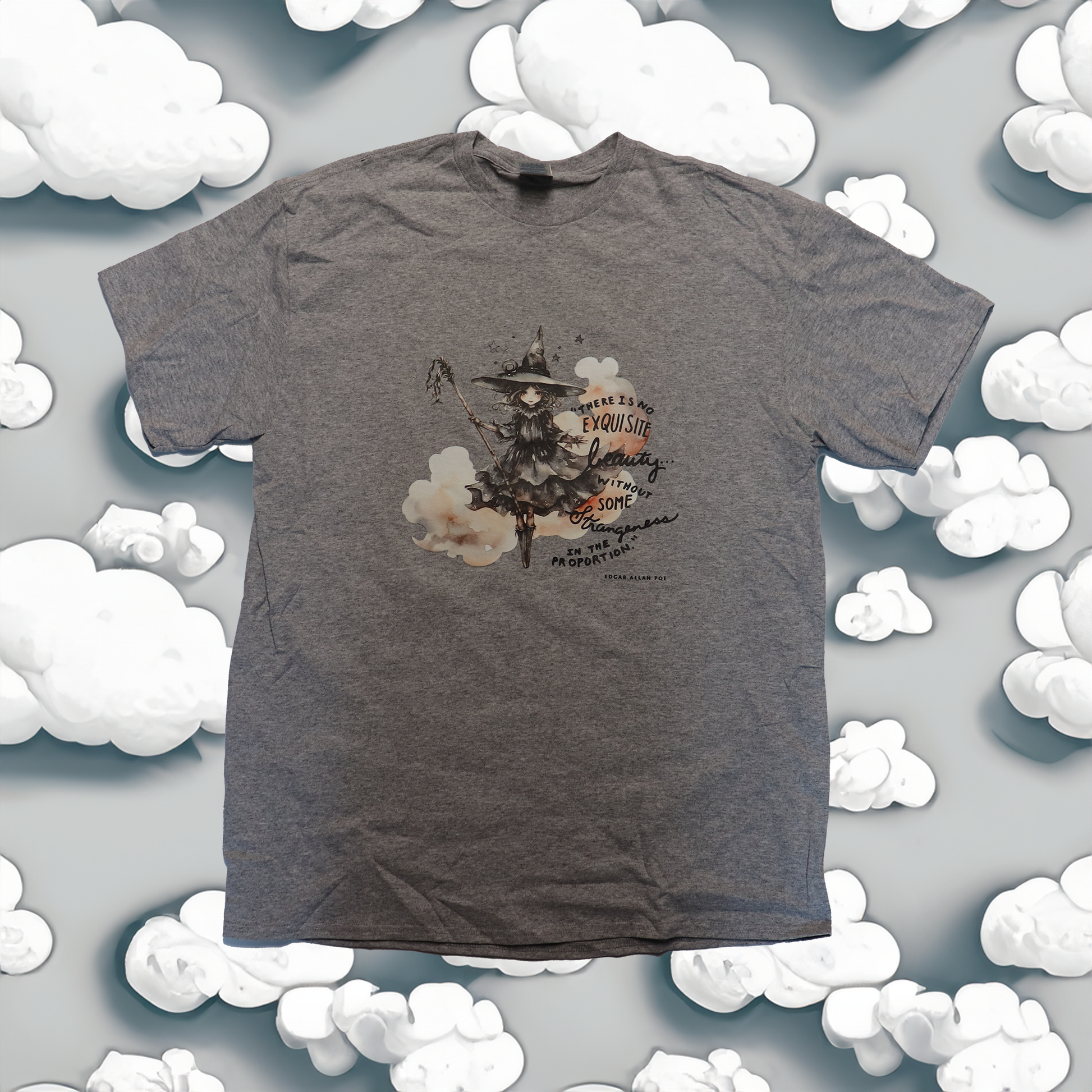 Womens EXQUISITE BEAUTY WITCH Tee for a woman who loves Halloween and the fall / autumn season. Quote by Edgar Allan Poe.