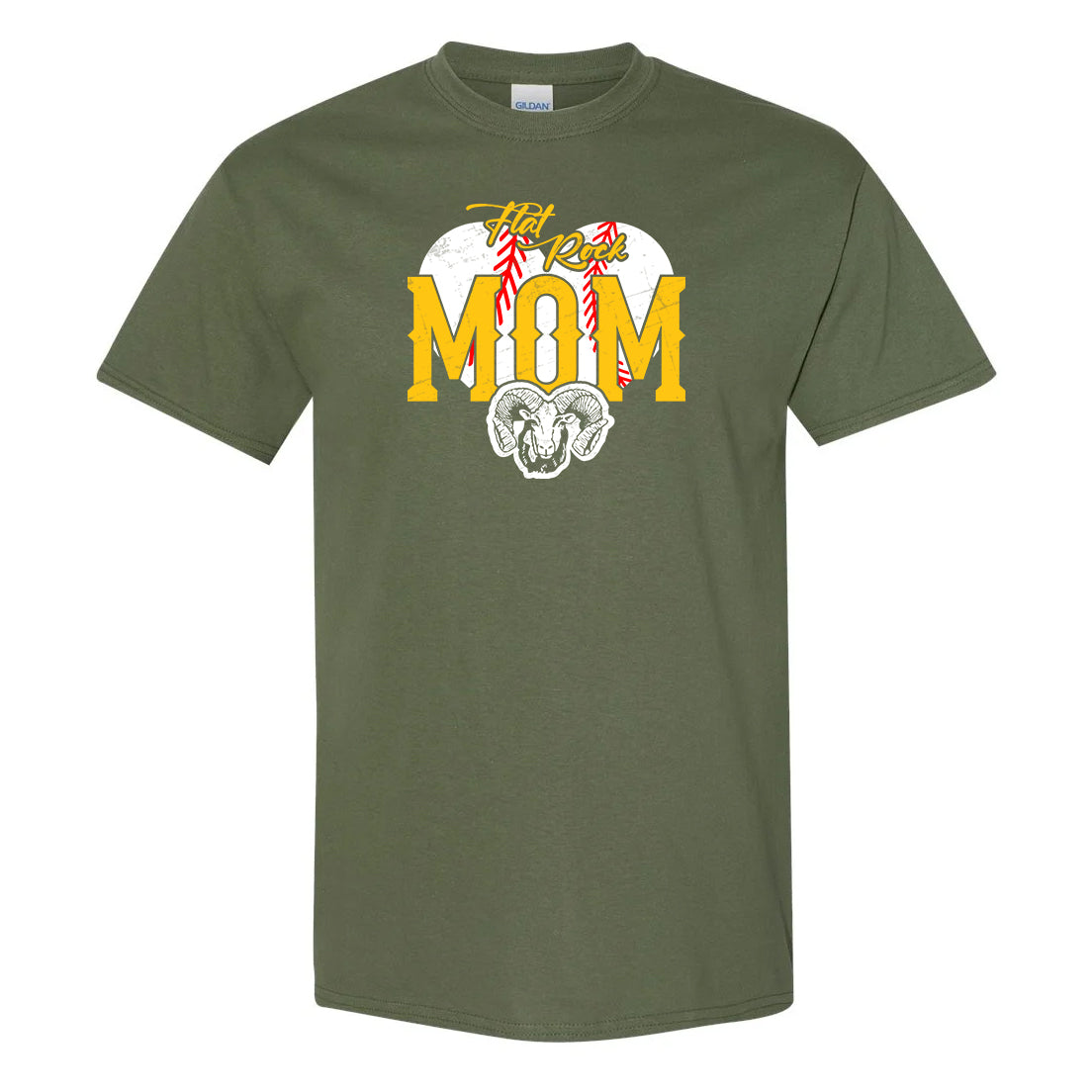 Mom, show your support for your Flat Rock Rams High School Baseball Team with this Military Green Gildan tee available in many adult sizes! Front imprint only.