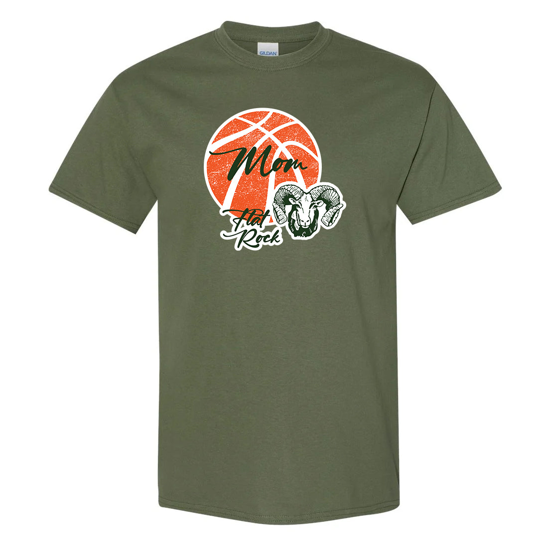 Mom, show your support for your Flat Rock Rams High School Basketball Team with this Military Green Gildan tee available in many adult sizes! Front imprint only.