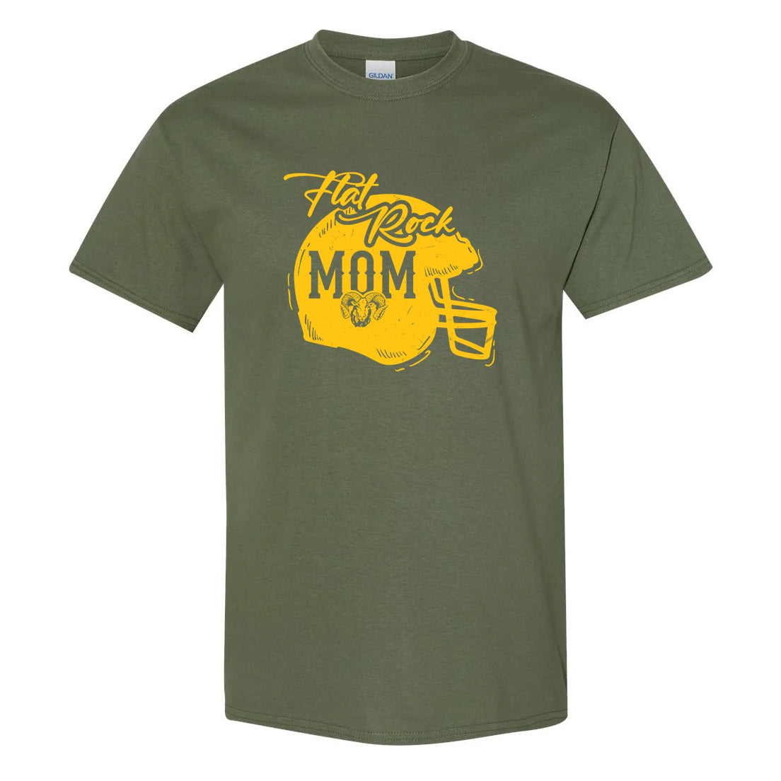 Mom, show your support for your Flat Rock Rams High School Football Team with this Military Green Gildan tee available in many adult sizes! Front imprint only.