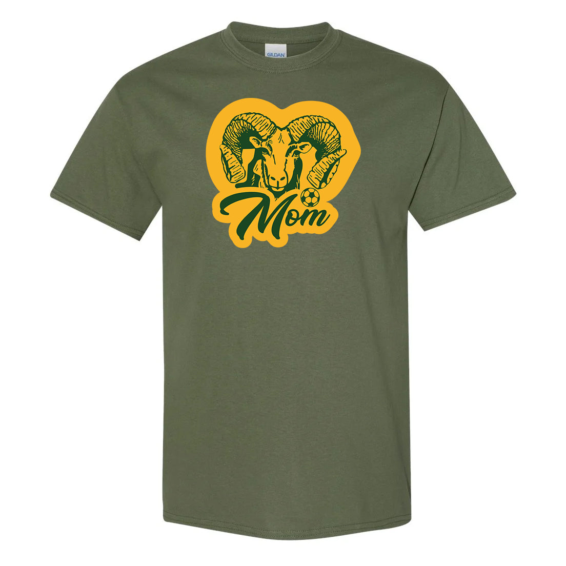 Mom, show your support for your Flat Rock Rams High School Soccer Team with this Military Green Gildan tee available in many adult sizes! Front imprint only.