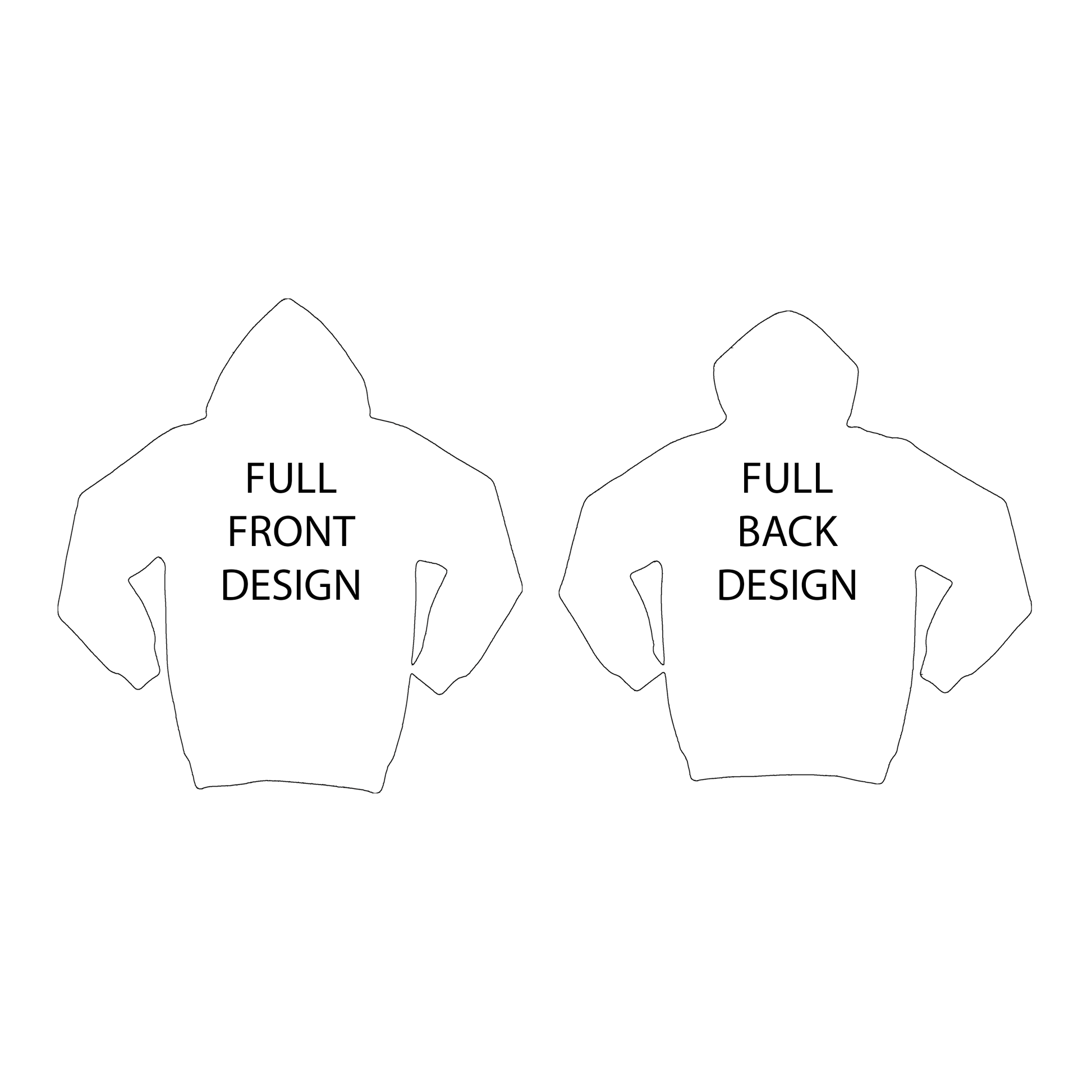 Customize your own hoodie with a full front and full back design on it. Production time typically takes 2 weeks depending on the volume and our current workload, but can also be ready as soon as same day. Please use Special Instructions box during checkout process.