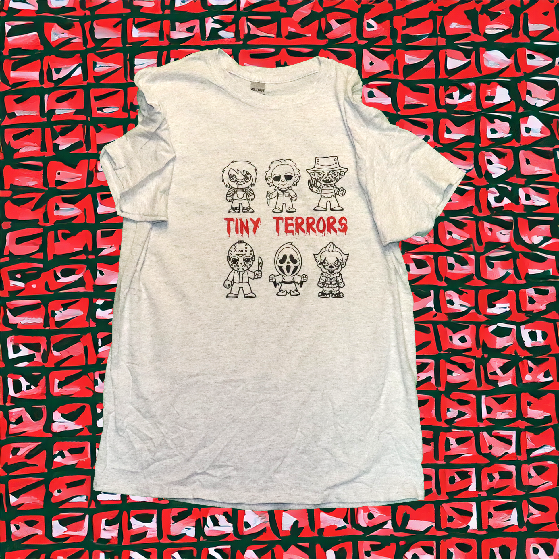 Womens TINY TERRORS Tee for a woman who loves horror movies.
