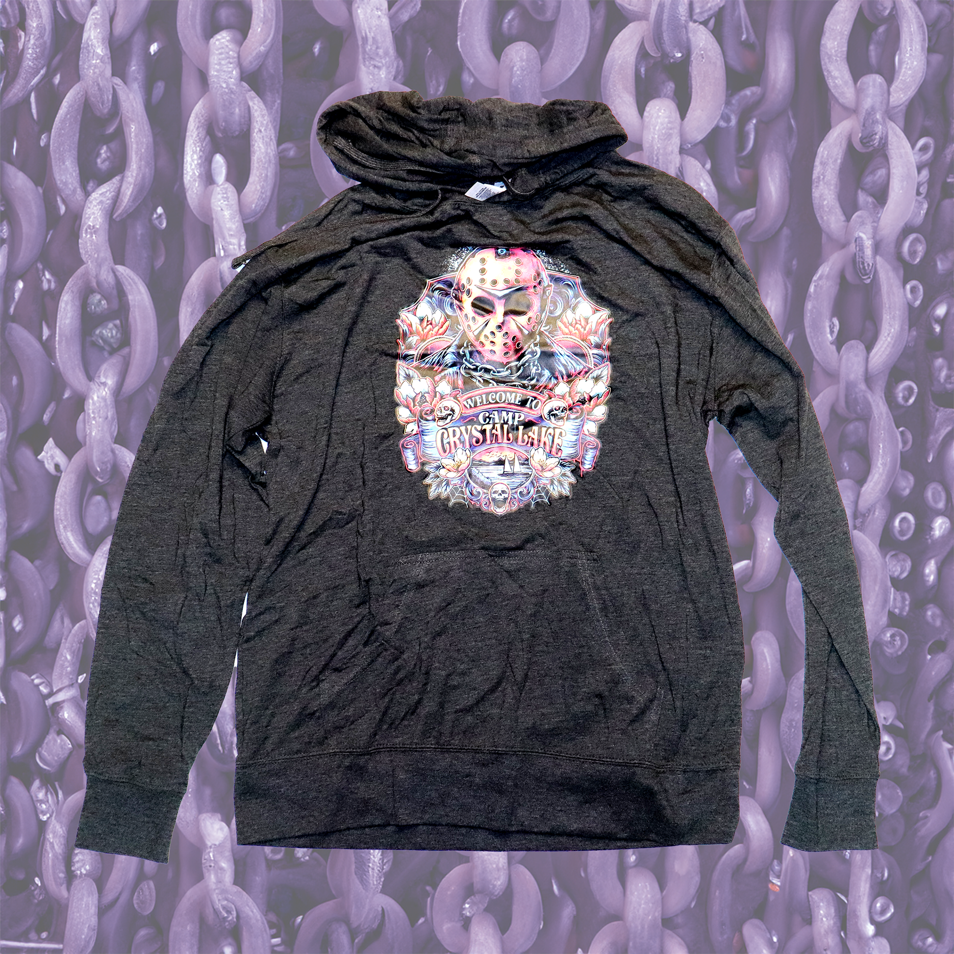 Mens WELCOME TO CRYSTAL LAKE Hooded Sweatshirt for a man who loves scary horror movies. A perfect Halloween gift.
