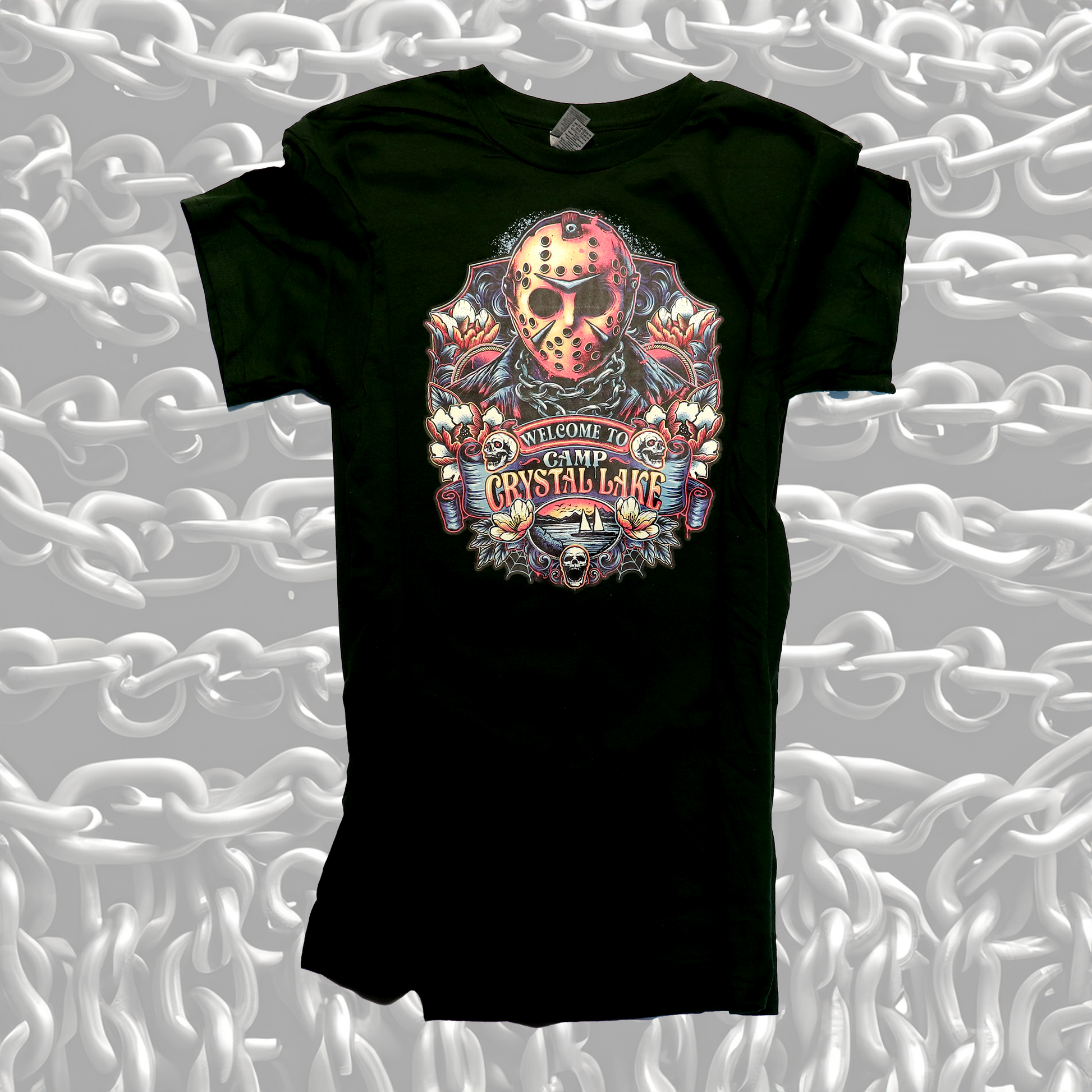 Mens WELCOME TO CRYSTAL LAKE Tee for a man who loves scary horror movies. A perfect Halloween gift.