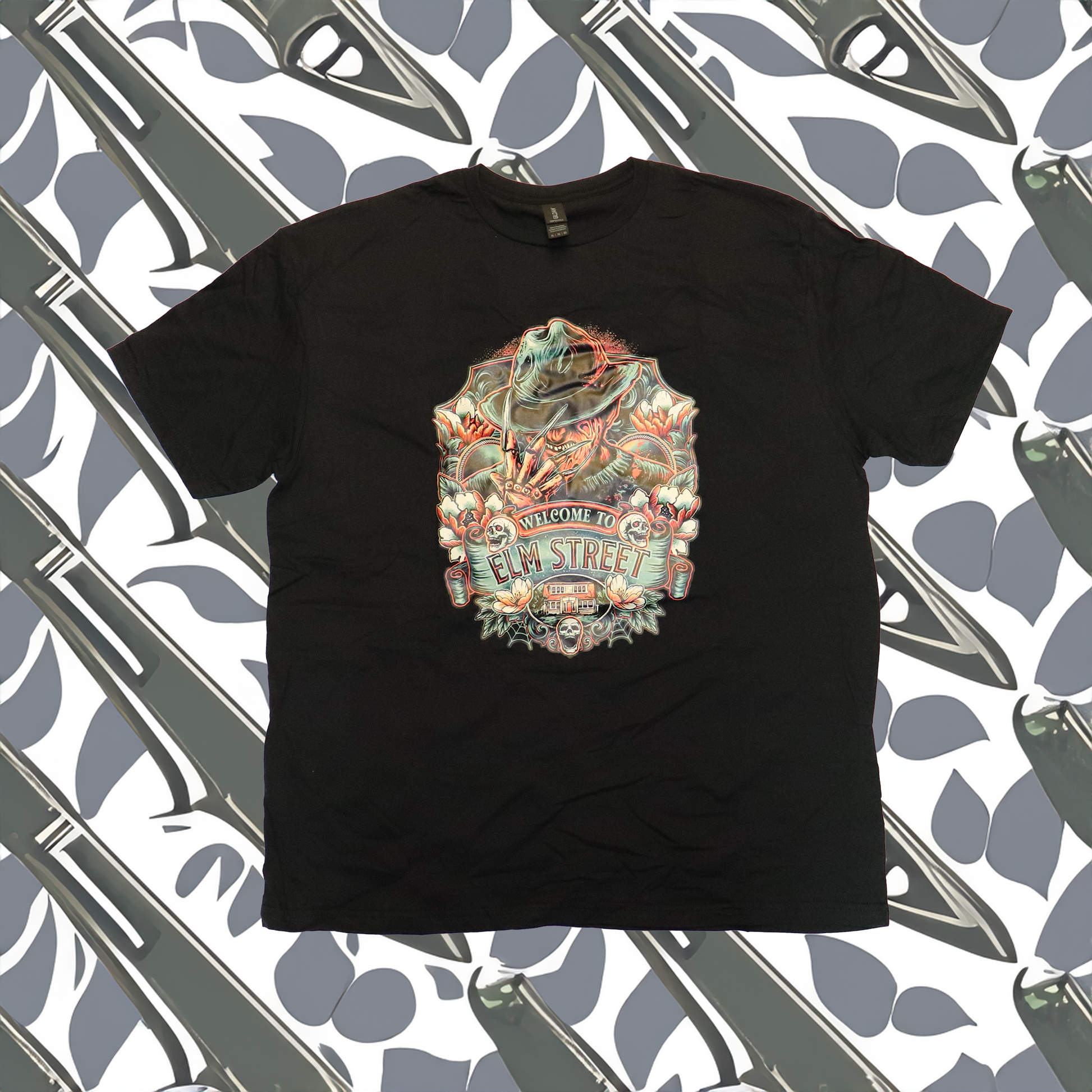 Mens WELCOME TO ELM STREET Tee for a man who loves horror movies or Halloween.