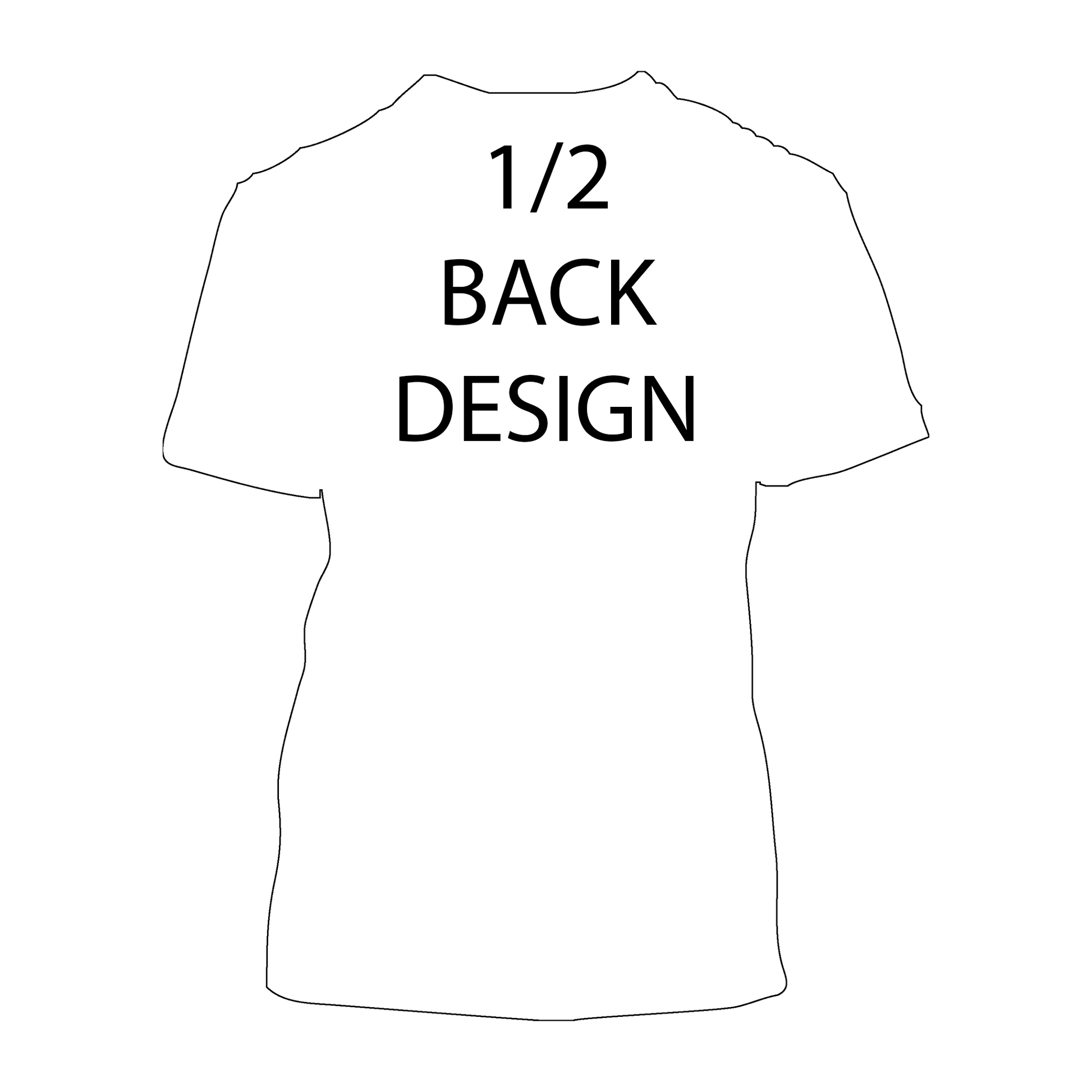 Customize your own t-shirt with a 1/2 back design on it. Production time typically takes 2 weeks depending on the volume and our current workload, but can also be ready as soon as same day. Please use Special Instructions box during checkout process.