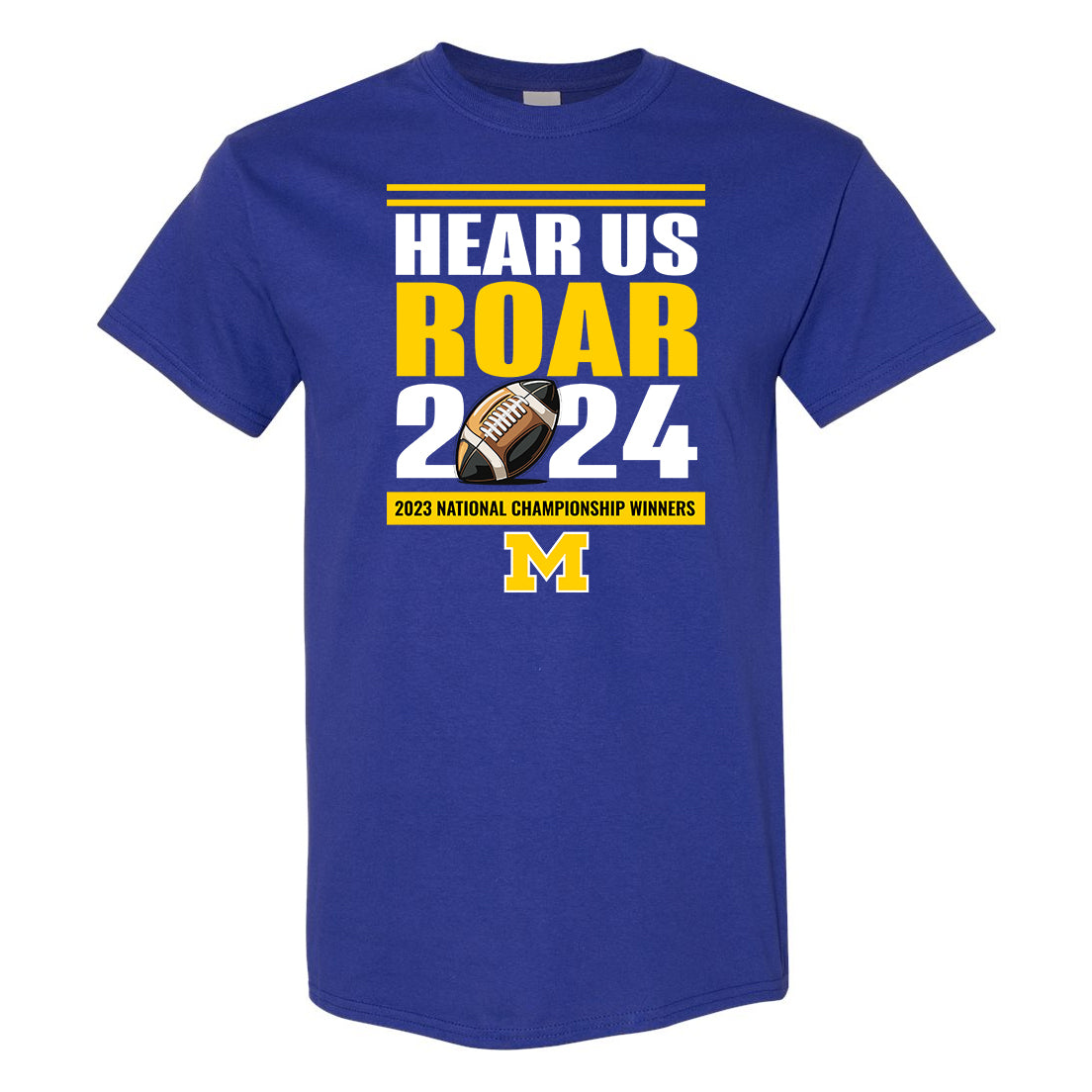 Celebrate the historic victory of the 2023 National Championship with our exclusive Gildan t-shirt – a testament to the Wolverines' triumph and the roar that echoes through the ages. "Hear Us Roar 2024" encapsulates the spirit of champions, and this shirt is your badge of honor.