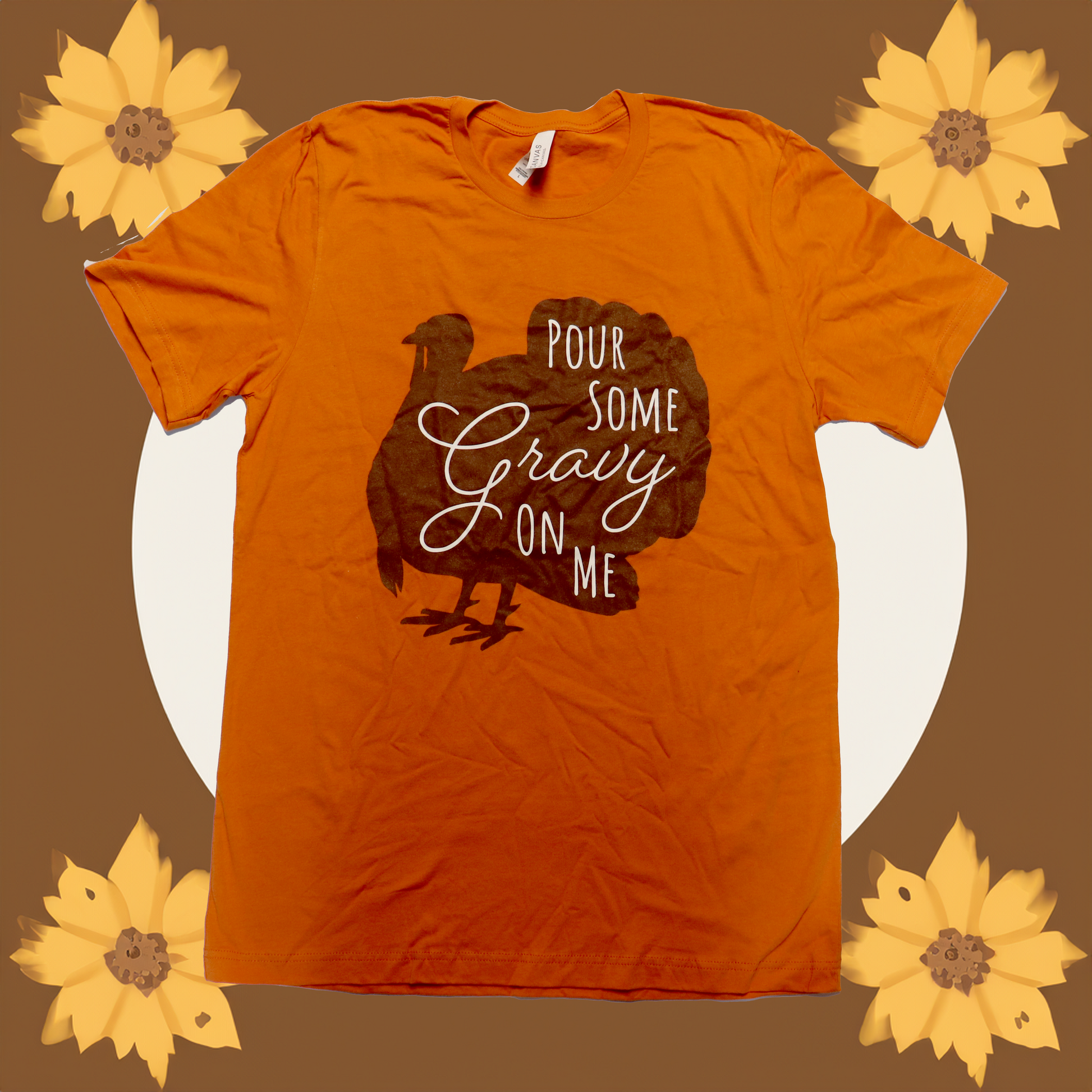 Womens POUR SOME GRAVY ON ME Tee for a woman who loves Thanksgiving.